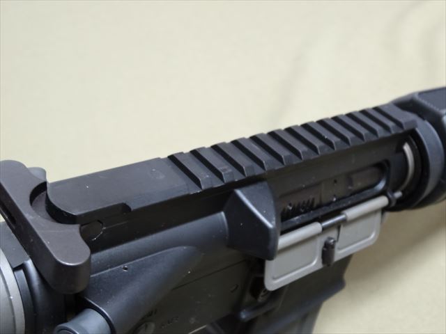 キャリングハンドルを外すので、リアサイトが無くなってしまいます。そこでリアサイトを用意しました。これはKSCのMKM AR15から取り外したLMTタイプのリアサイトがありますので、これを使うことも考えましたがもっとシンプルなフリップアップリアサイトを購入しました。