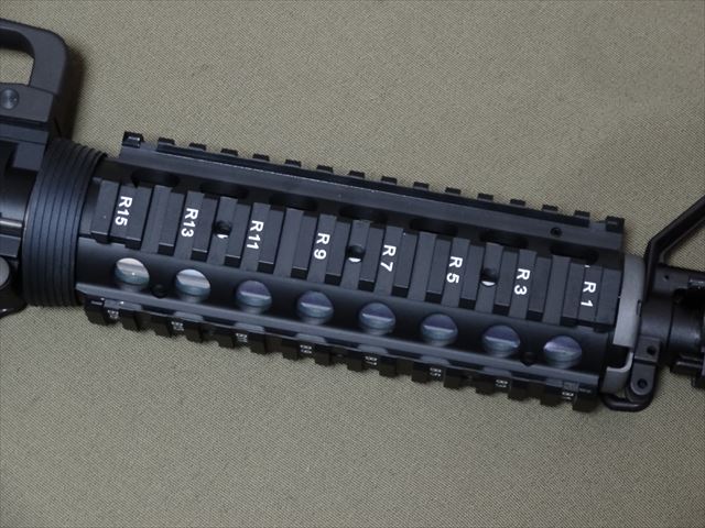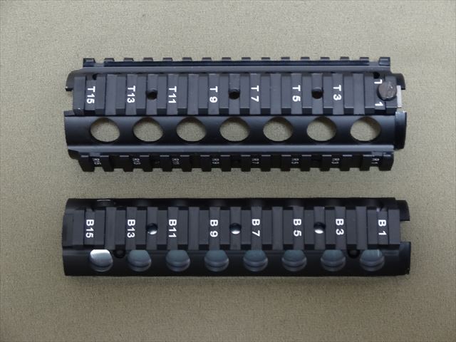 4面のレイルには白文字でナンバリングがされています。似たようなハンドガードがありますが写真で見て、本物と似ていて価格も手頃な物を探して、この商品に行き着きました。