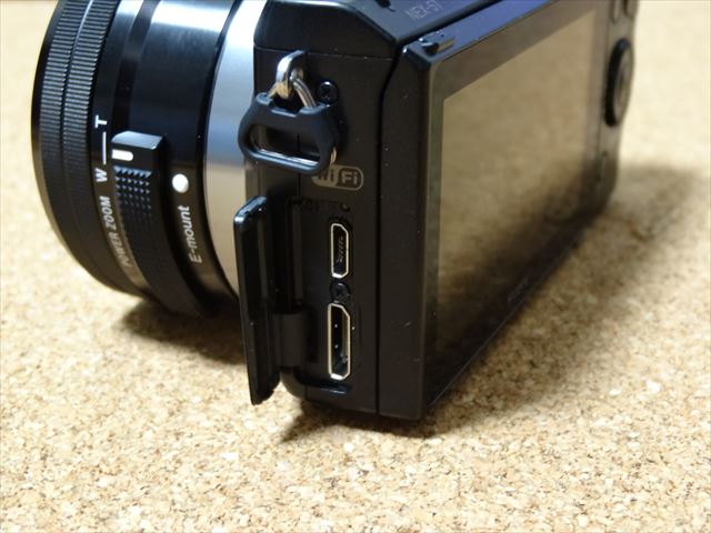 USBとHDMI端子。その上にストラップの三角鐶がありますが、これがボディに当たってチャラチャラと音がします。